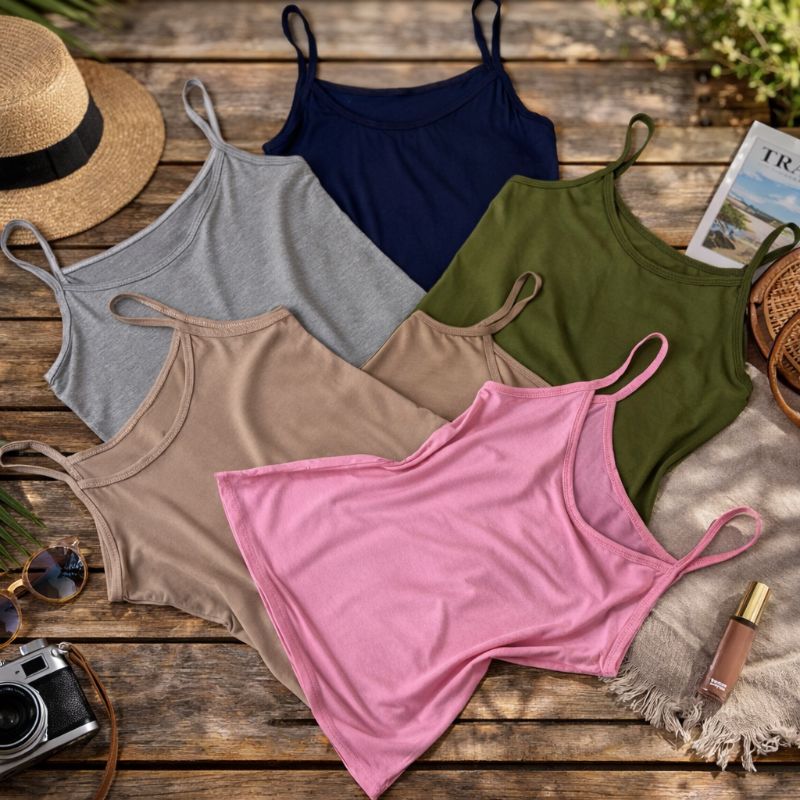 As peças essenciais que não podem faltar no seu guarda-roupa. Nossas regatas de alça fina, sem bojo, oferecem leveza, conforto e versatilidade.